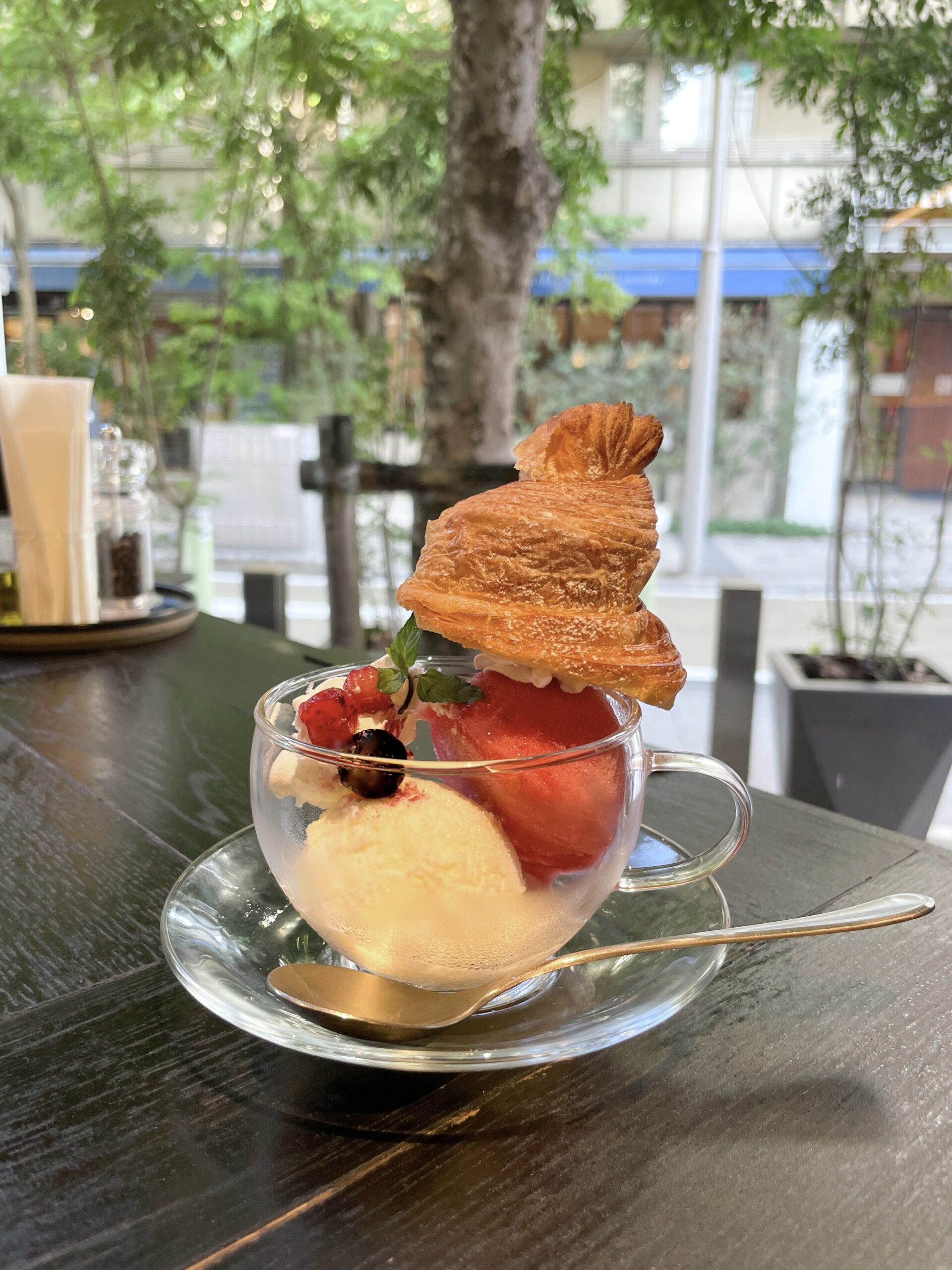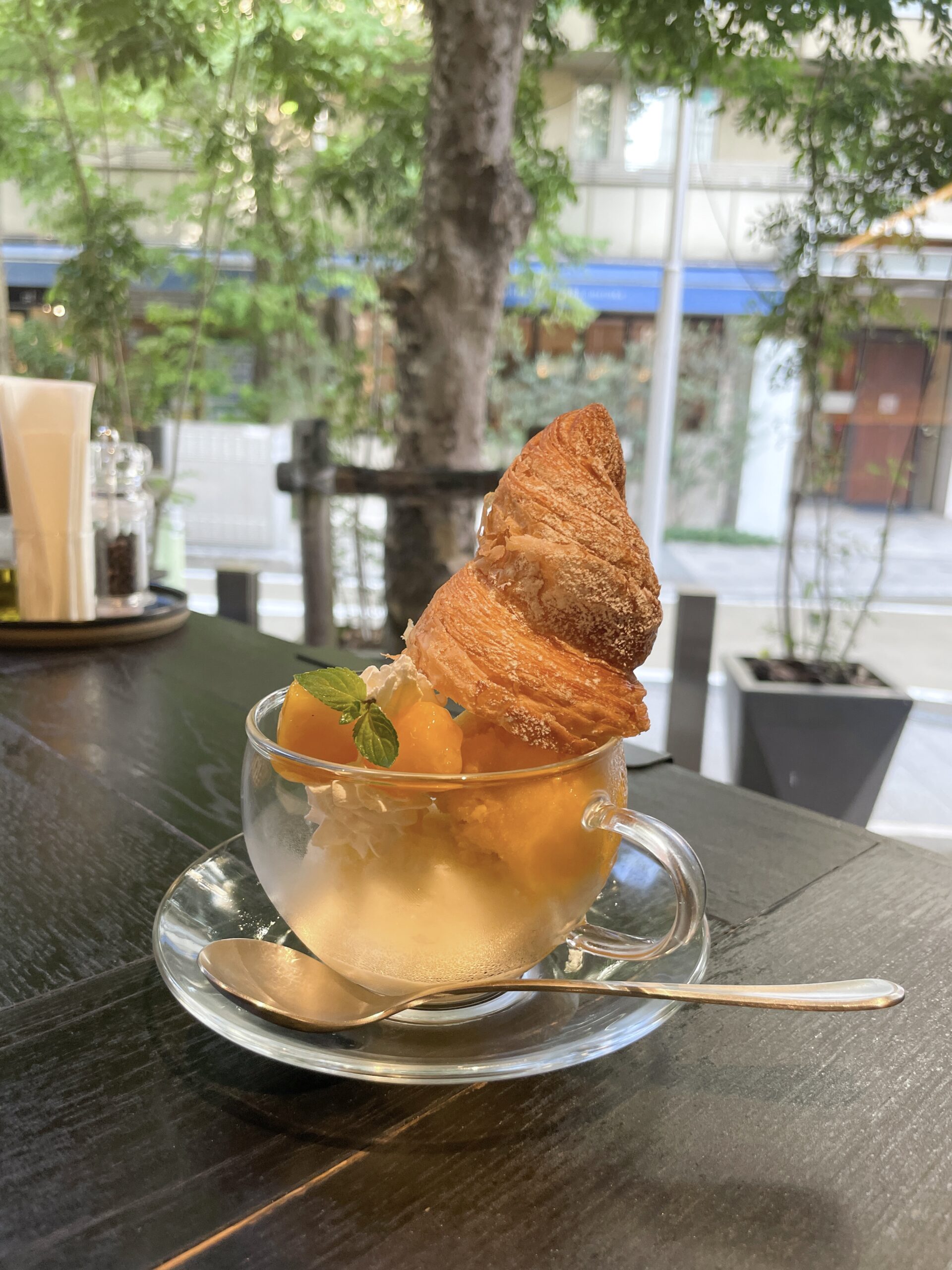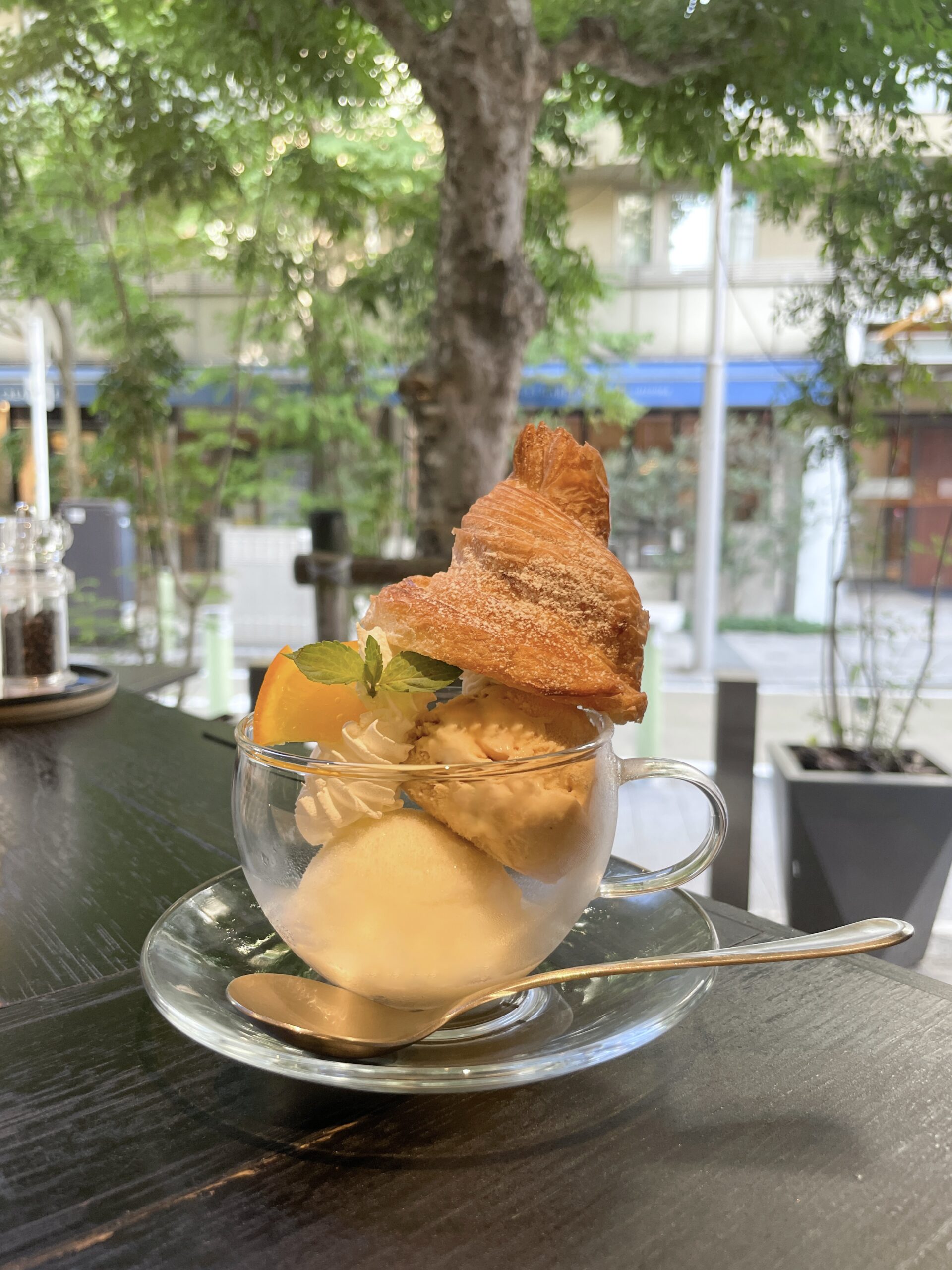 サクサクのクロワッサンに、ひんやりとろけるジェラートをサンドしています。