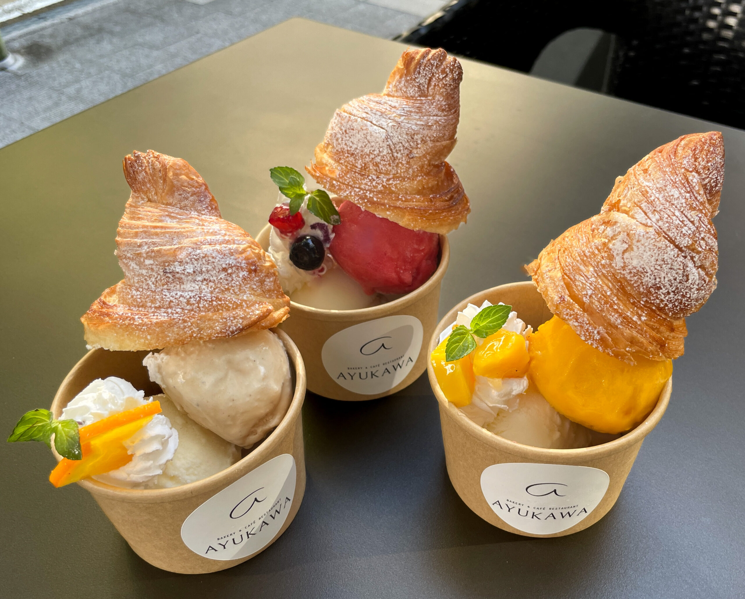 当店の人気スイーツ「ジェラクロワッサン」がリニューアルして新登場、店内でもお召し上がりいただけるようになりました。